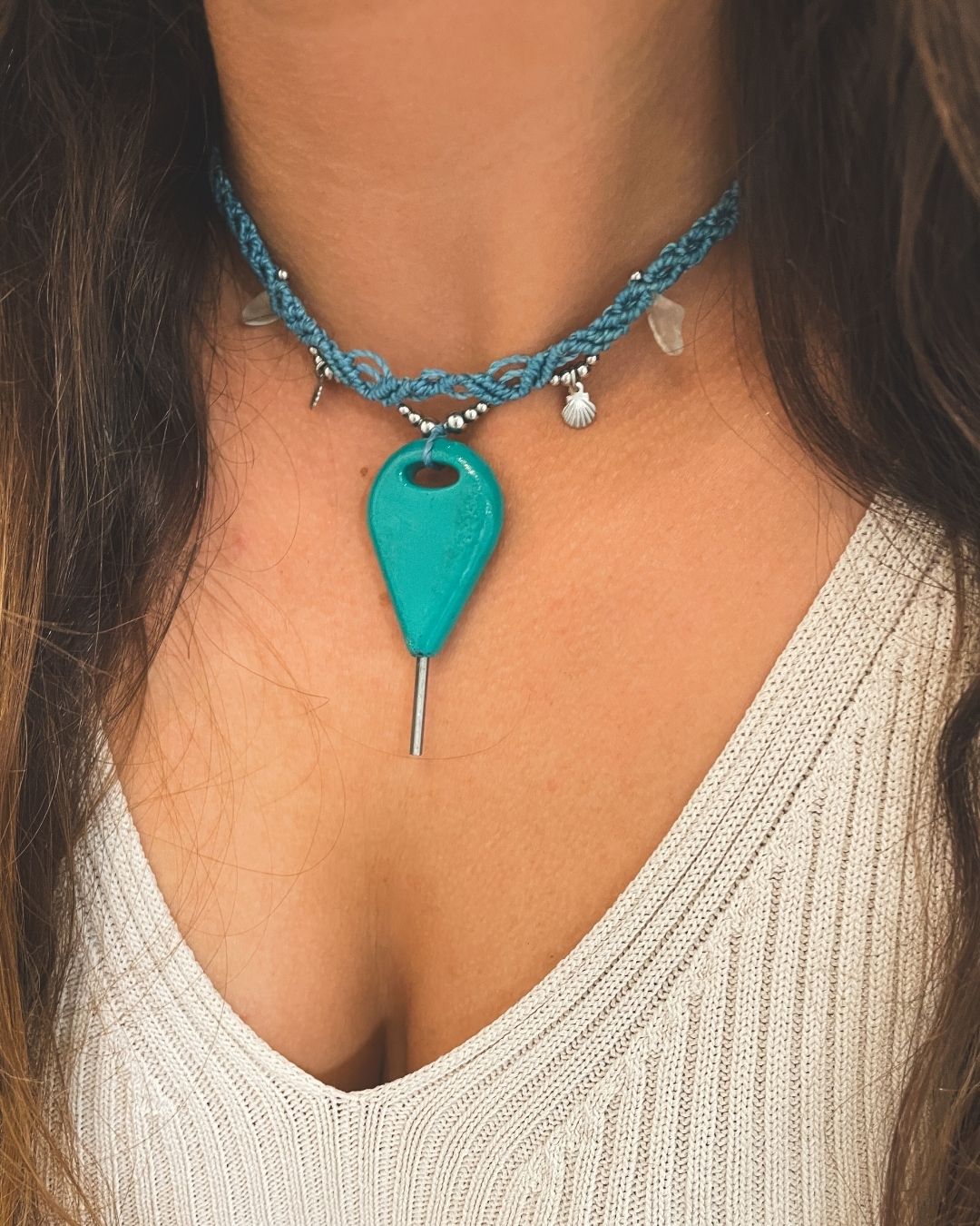 Un ejemplo de eso es este collar, que nació de un reto: Montse me envió la llave de sus quillas de surf y juntas diseñamos esta pieza para que nunca la perdiera en la arena.
